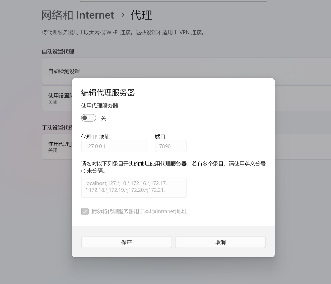 原因是上次开启clash科学上网后没有关掉系统代理,这时候去clash关掉系统代理就可以了,有时候即使在clash关掉代理也不能正常上网,打开网络中的代理,找到手动设置代理,手动关掉被clash打开的代理服务器即可。